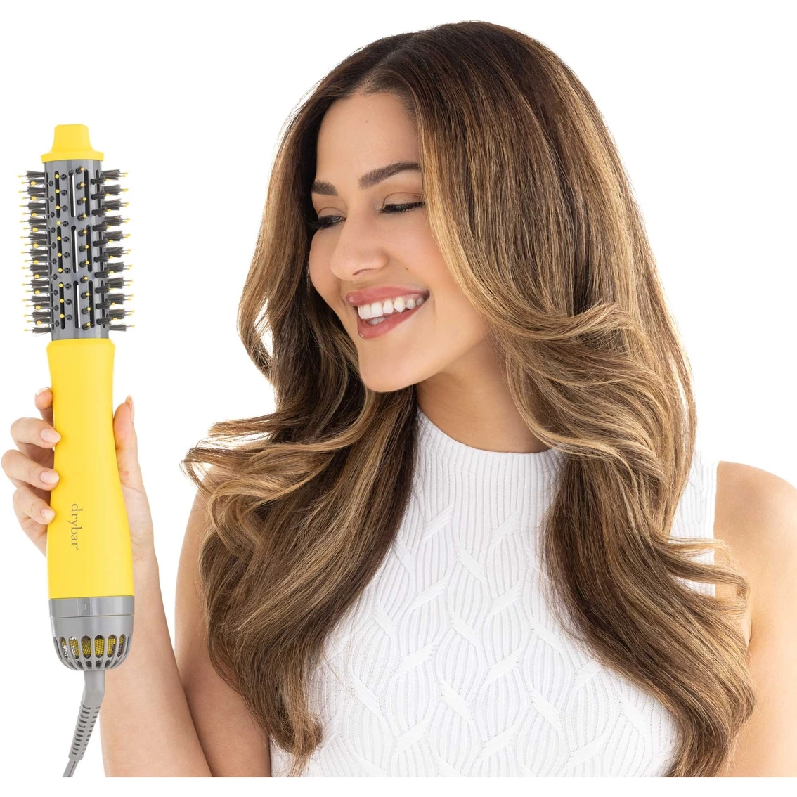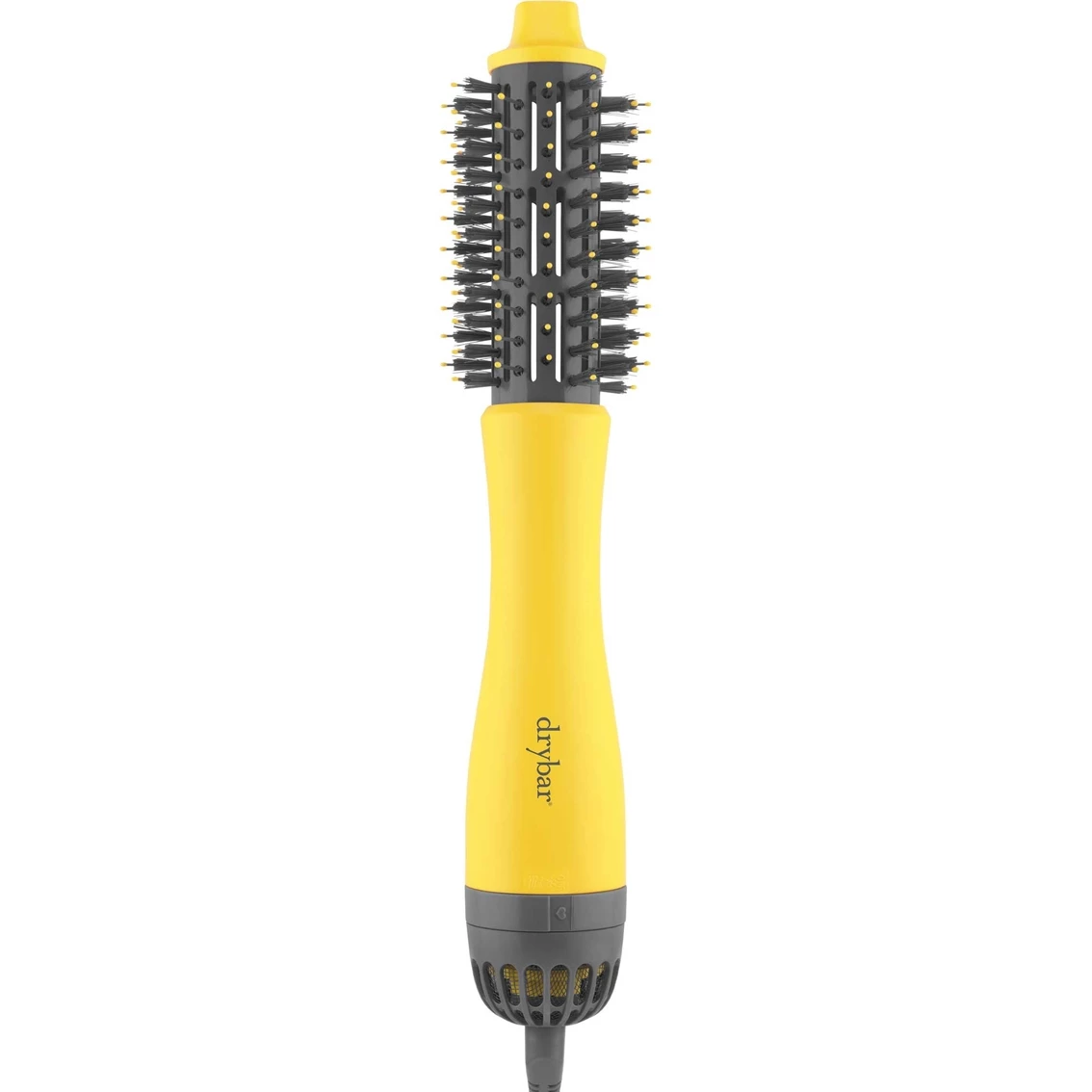 The Drybar The Half Shot Small Round Blow-Dryer Brush combines the hot air of a blow-dryer with the structure of a small round brush to create defined waves and curls for a smooth, shiny blowout in one simple step. Exceptional tension, brush is a blend of nylon and tufted bristles that grips hair to detangle and smooth strands, while the round-shaped barrel adds defined curls and waves. Perfect for detailed styling and bangs! A faster blowout, includes three temperature settings (cool/medium/high) and maximum airflow that makes blow-drying a breeze for all hair types.
