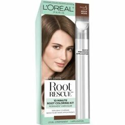 Rescue your roots in between colorings. This 10-minute permanent hair color root touch up from L’Oreal is a low ammonia color gel with built in conditioning and an aromatic scent. Root Rescue is recommended to cover gray hair for root regrowth of less than three weeks. It’s quick precision applicator makes touching up roots fast and easy and it covers 100 percent of your grays. No uneven touch-ups, just seamless, beautiful color from root to tip. The Root Rescue hair dye kit is available in a color palette ranging from jet black to medium golden brown and light blonde. Packaging may vary. What you receive may not be what is reflected on site.