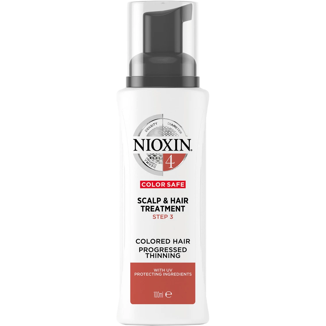 Nioxin System 4 Scalp Treatment is a volumizing leave-on treatment with antioxidants and botanicals that provide a refreshed scalp environment. SPF 15 sunscreen also helps protect the exposed scalp from the sun. Nioxin System 4 Scalp Treatment is formulated for noticeably thinning, fine, chemically treated hair.