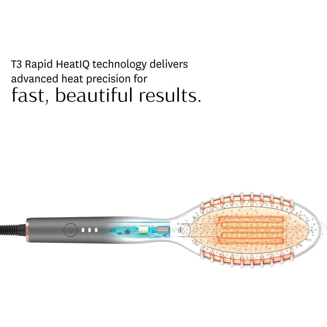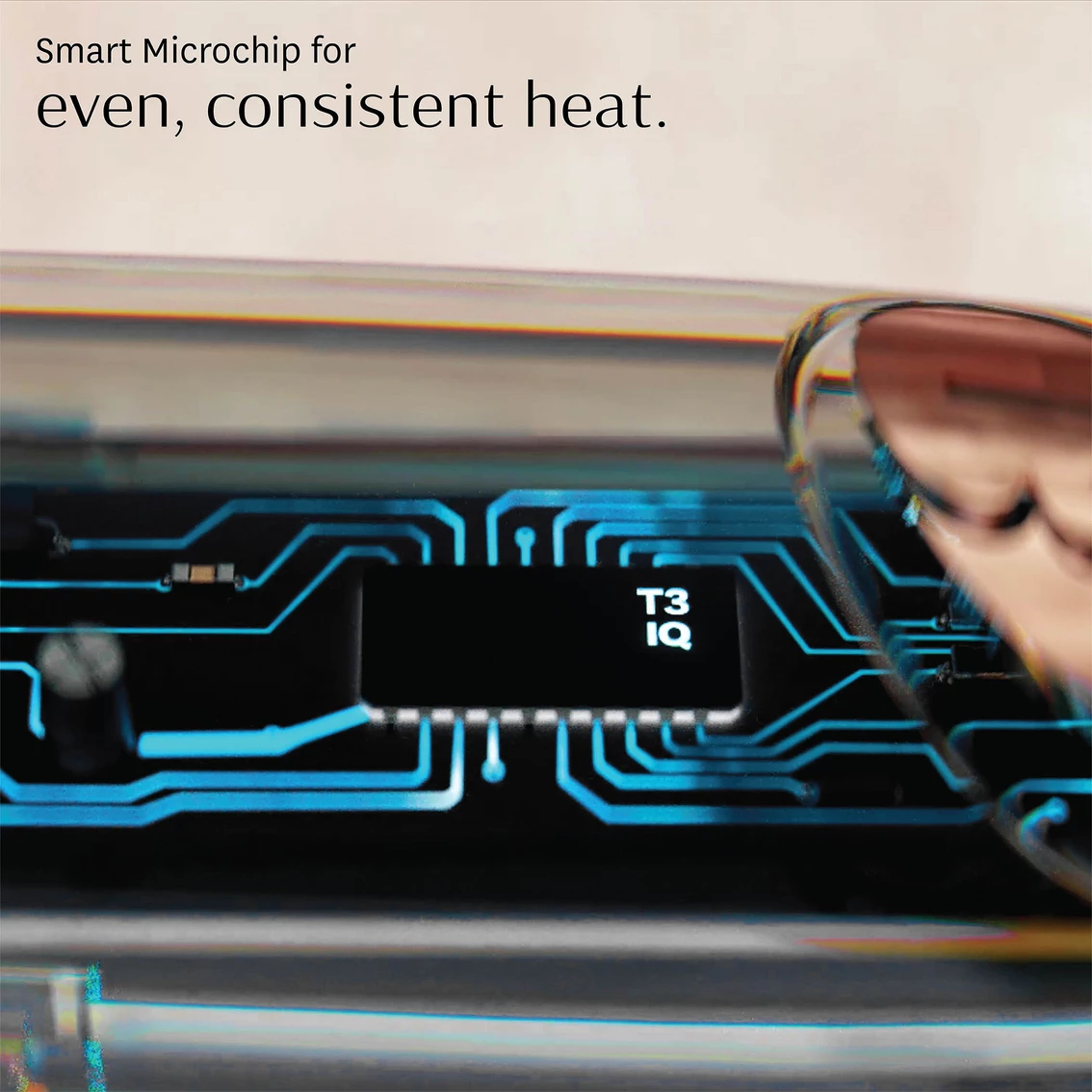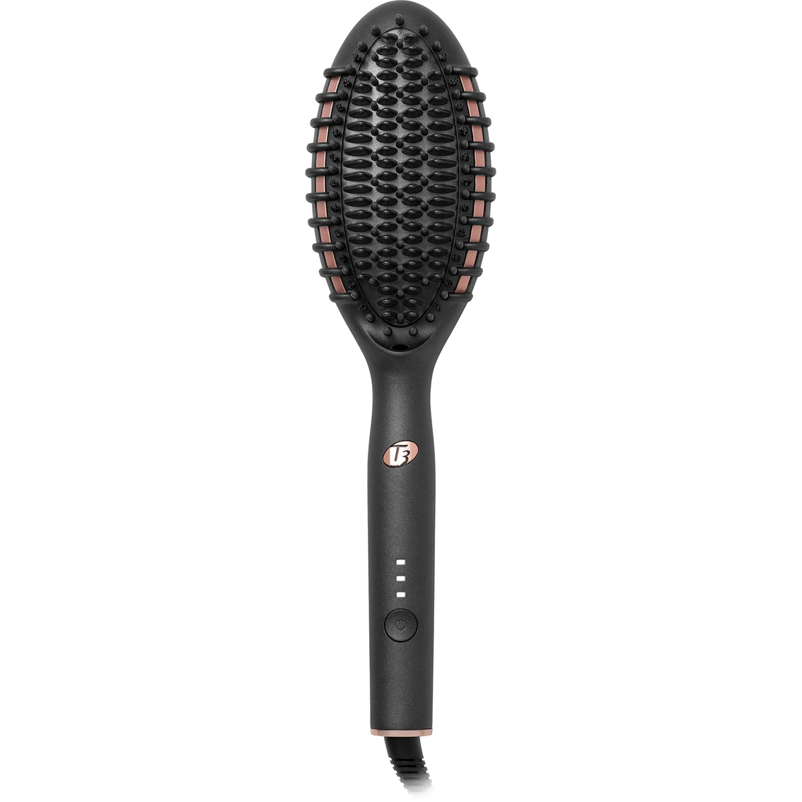 Featuring tufted bristles for optimal tension and an extended heated surface for easily reaching roots and creating bends, the T3 Edge will take you from sleek and smooth to sky-high volume to carefree waves in just one pass. Powered by T3 Rapid HeatIQ Technology — a smart microchip and high-performance ceramic heaters combine to deliver even and consistent heat from edge to edge, while a negative ion generator produces 10mm negative ions per second for smooth, shiny, frizz-free results that last. Three digitally controlled heat settings provide personalized heat for a range of hair types and textures, and custom-designed CeraGloss ceramic teeth glide easily through hair for seamless styling.